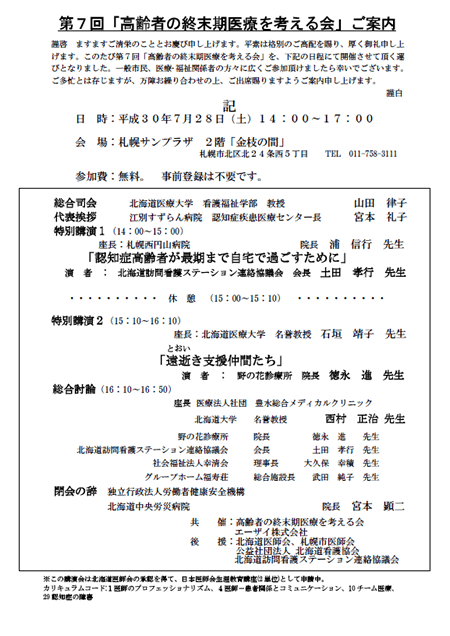 7月28日 第7回「高齢者の終末医療を考える会」ご案内